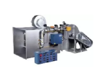 Gerador de ar quente por dutos. Modificação do modelo G81, permite que o ar seja entregue em temperaturas mais altas colocando o queimador após a saída do ventilador.